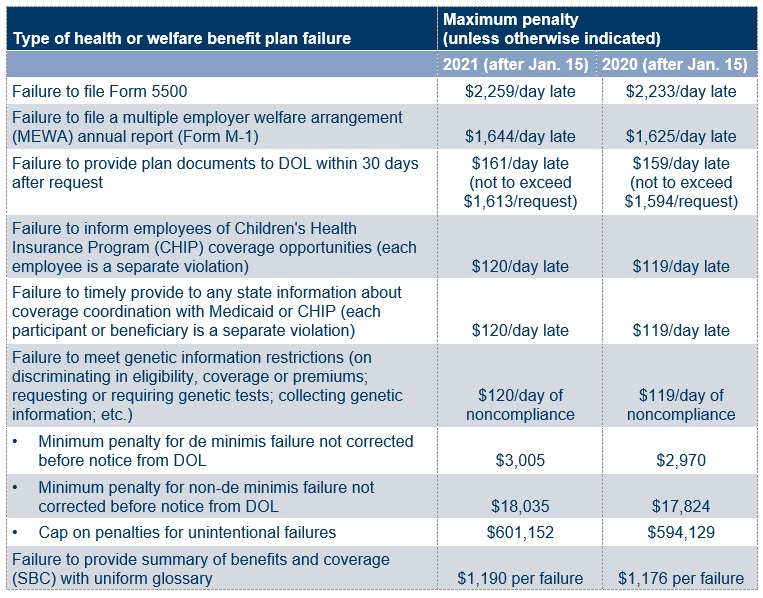 DOL sets 2021 penalties for health and welfare benefit plan violations